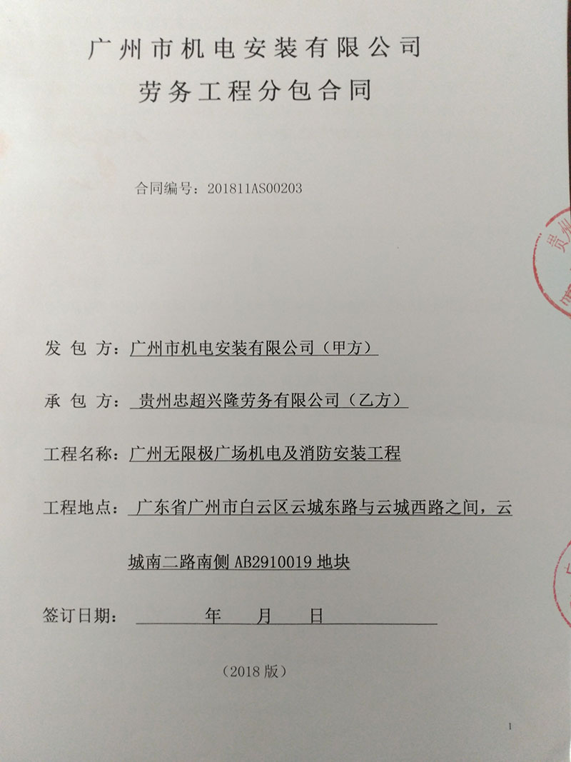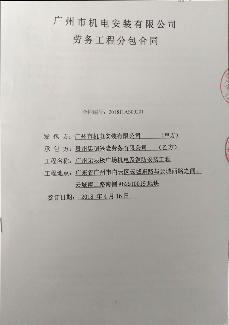 工程名称:广州无限极广场机电及消防安装工程
